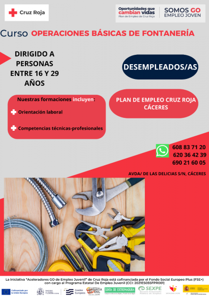 Cruz Roja Cáceres organiza los siguientes cursos, dirigidos a personas jóvenes en situación desempleo: