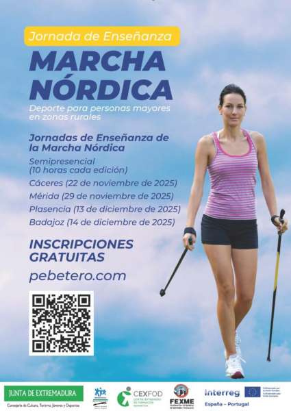 - Jornadas de Enseñanza de la Marcha Nórdica. Ciclo de cuatro jornadas en distintas localidades extremeñas: Cáceres – 22 de noviembre; Mérida – 29 de noviembre; Plasencia – 13 de diciembre; y Badajoz – 14 de diciembre. Modalidad semipresencial (10 horas por edición). Dirigidas a personal con formación deportiva (FP, Certificado Profesionalidad o Universitaria) que pueden ejercer como monitores deportivos y quieren ampliar conocimientos sobre una nueva modalidad.
