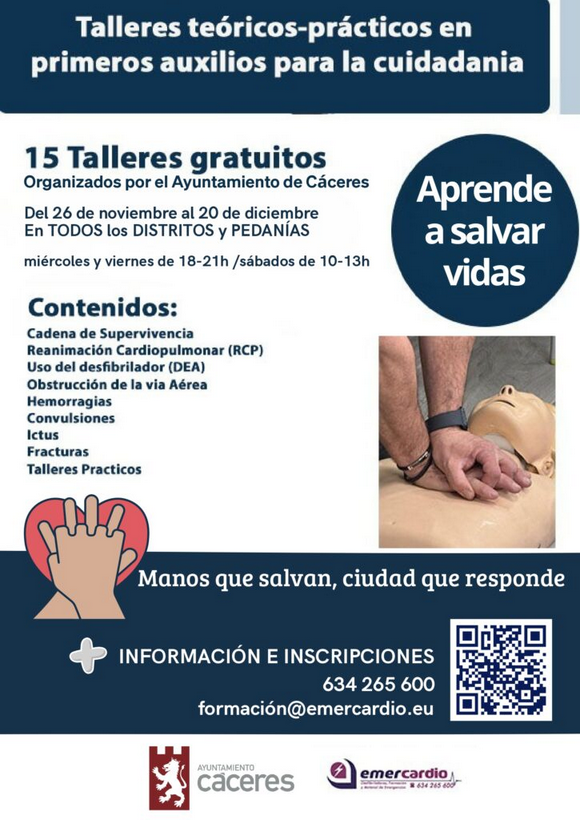 El Ayuntamiento de Cáceres ofrece talleres teórico-prácticos en primeros auxilios en todos los distritos y pedanías de Cáceres.