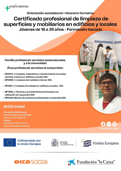La Fundación Ecca Social ofrece este curso gratuito de especialista en limpieza con acceso a obtención de certificado profesional.
