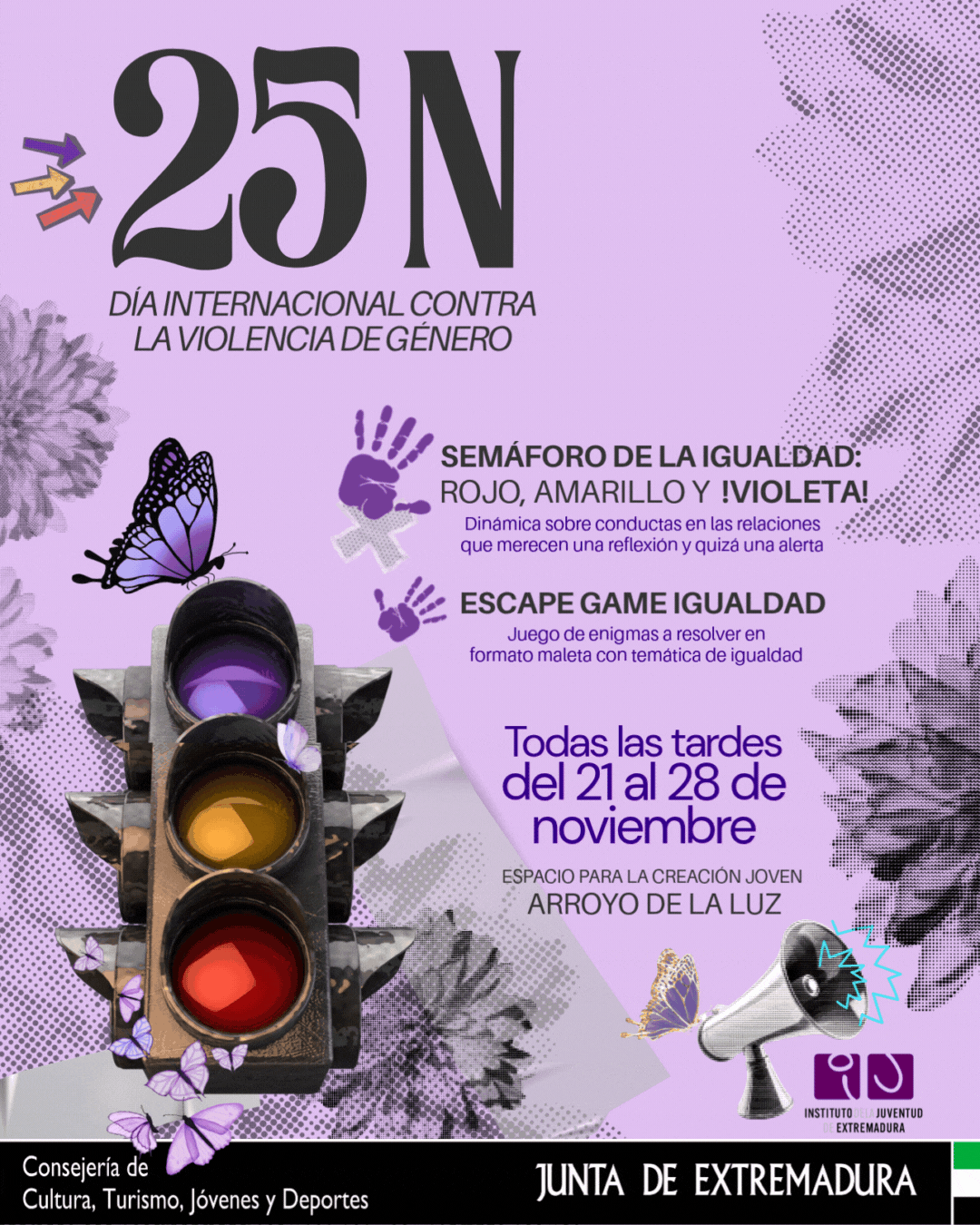 El Espacio para la Creación Joven de Arroyo de la Luz organiza 2 actividades relacionadas con la celebración del 25N, Día Internacional para la Eliminación de la Violencia contra las Mujeres: