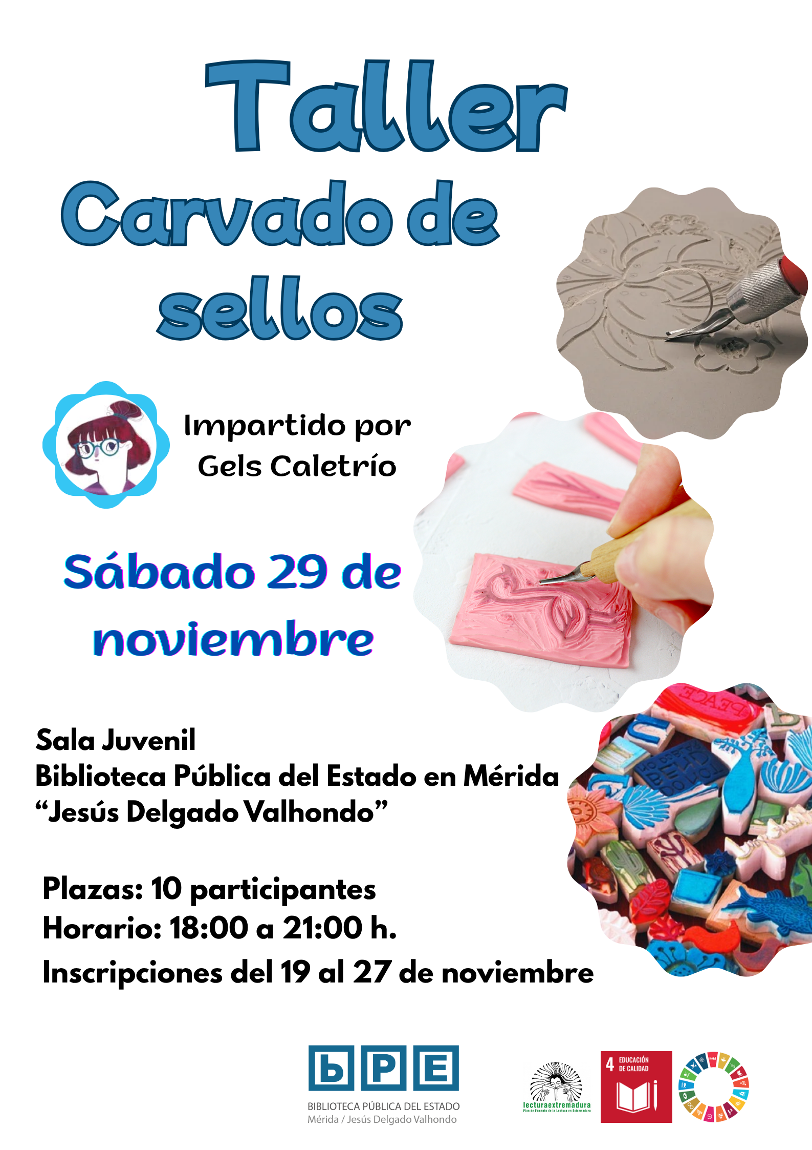 - "Taller de carvado de sellos" (sábado 29 de noviembre). Inscripción hasta el día 19 hasta el 27 de noviembre.