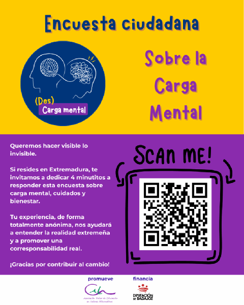 Si resides en Extremadura, Cala te invita a dedicar 4 minutos a responder esta encuesta sobre carga mental, cuidados y bienestar. Tu experiencia, de forma totalmente anónima, ayudará a entender la realidad extremeña y a promover una corresponsabilidad real.