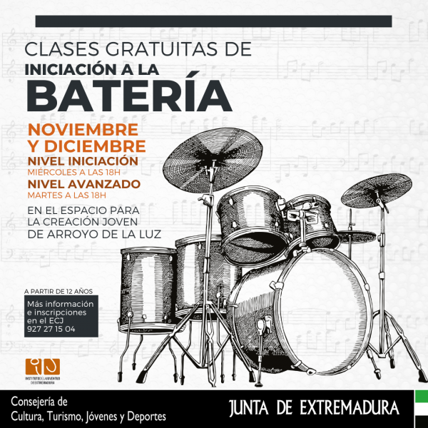 Clases de iniciación a la batería en el ECJ de Arroyo de la Luz